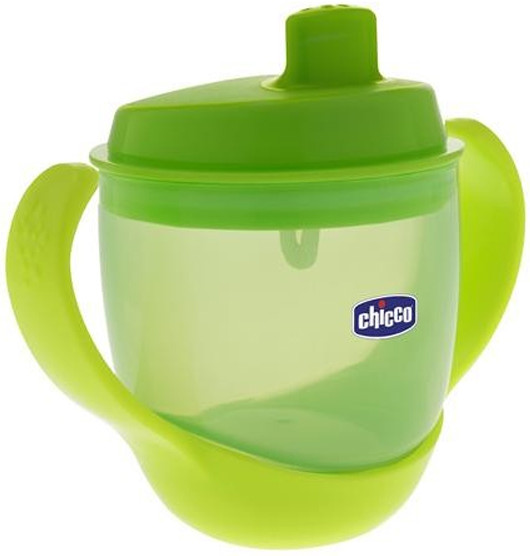 Неразливащата се чаша с твърд накрайник на "Chicco" помага на бебето да се научи да позиционира правилно устните и езика си, когато пие от чашка. Тя регулира потока на течности и постепенно става първата чашка за пиене на бебето. Чашата е създадена, за да посрещне нуждите и потребностите на детето, за да намери начин за лесно и прогресивно развитие. За да го свикнете да пие от истинска чаша, отстранете накрайника от чашата , а след това и помощните дръжки. Неразливащия се накрайник е със специална клапа с капкова система, която предпазва от разливане на течността, а ергономичните дръжки се адаптират към малките ръчички, позволявайки на детето да се обслужва само.