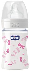 Стъклено шише с широко гърло - 150 ml Комплект с биберон за бебета над 0 месеца Chicco |