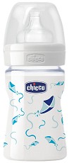 Стъклено шише с широко гърло - 150 ml Комплект с биберон за бебета над 0 месеца Chicco |
