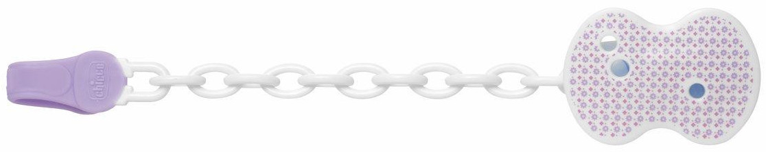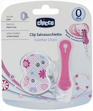 Клипсът на "Chicco" е един удобен и красив аксесоар към всяка залъгалка. Той я предпазва чиста, а надеждното захващане към бебешката дрешка осигурява максимална безопасност и предотвратява изпускането ѝ. Верижката е подходяща за всички видове залъгалки с халка. Клипсът е изработен от безопасни материали. Може да се стерилизира.