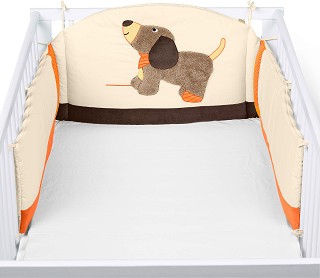 Обиколникът на "Sterntaler" ще осигури спокойствие на родителите, че бебето е в безопасност по време на сън и игра в креватчето. С декорация кученце, ще грабне интереса на вашето мъниче, като ще му прави компания в игрите и в съня. Той обгръща вътрешната страна на креватчето, като предпазва бебето от удар в предпазните решетки.