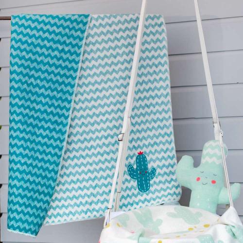 С бебешкото одеялце "Кактус" от серията "Juwel" може да повивате вашето новородено бебе или да го използвате по време на разходка в детската количка. Одеялцето е двулицево, изработено от 95% памук и 5% вискоза, което го прави много меко и пухкаво, подходящо за студените дни и нощи. Всички бои, които са използвани за направата на одеялцето са напълно безвредни за здравето и не дразнят нежната бебешка кожа.